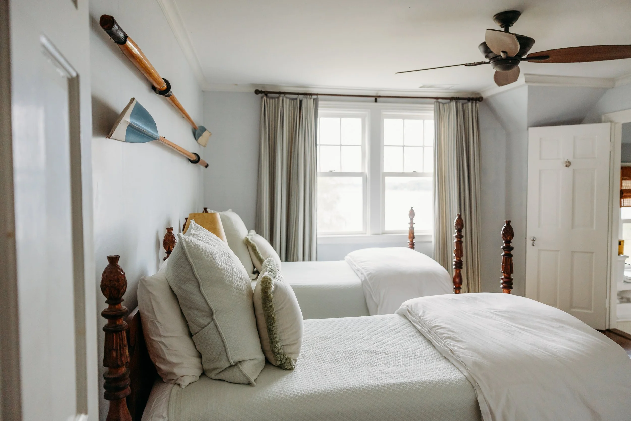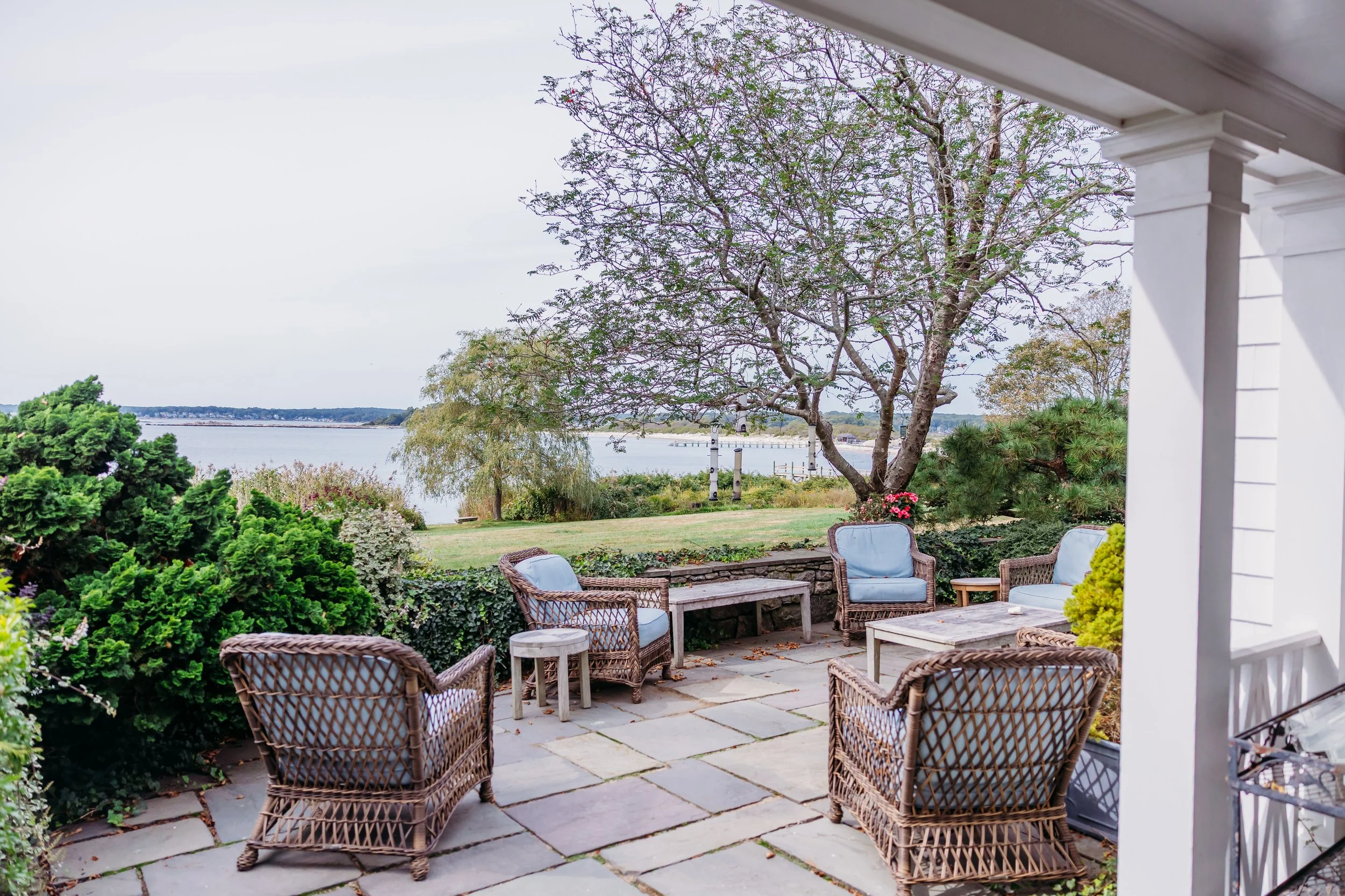 Nestled in the serene waterfront community of Old Black Point in Niantic, CT, our retreat home is a stunning private residence offering both charm and luxury. With 10 bedrooms (private and shared options), soaring spaces filled with natural light, a studio overlooking the water, an outdoor hot tub to relax in, and cozy gathering spots with fireplaces indoors and out, it’s the perfect setting for rest and connection. A private chef will prepare nourishing farm-to-table meals, enjoyed in the beautiful dining room overlooking the sound. Options include: